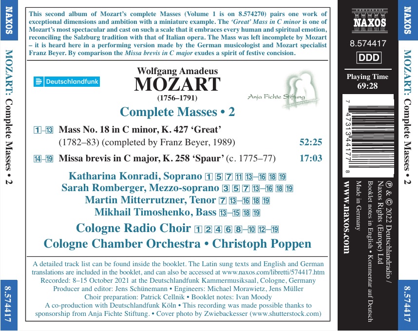 MOZART Complete Masses Vol. 2: Mass No. 18 "Great", Missa brevis "Spaur"