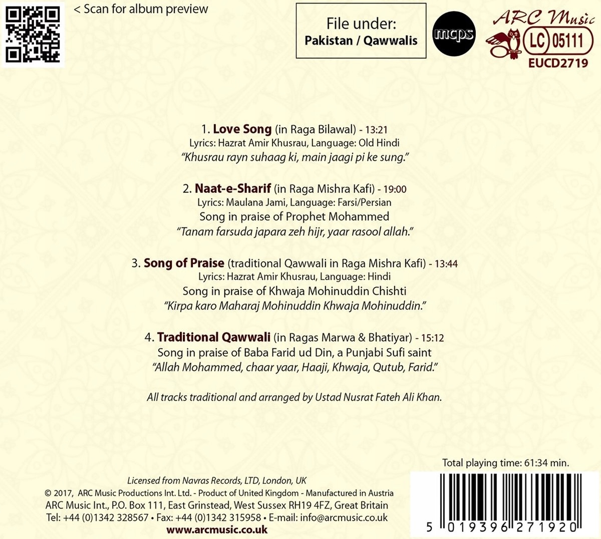 - Song of Praise (traditional qawwali in Raga Mishra Kafi) lyrics: Hazrat Amir Khusrau, in Hindi