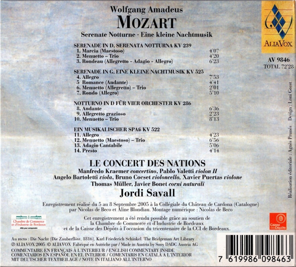 Wolfgang Amadeus Mozart - Serenate Notturne, Eine Kleine Nachtmusik - Le Concert Des Nations, Jordi Savall